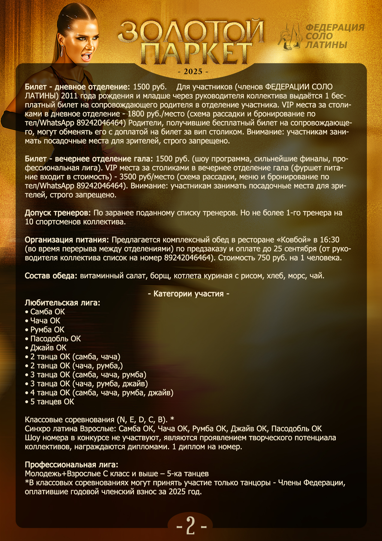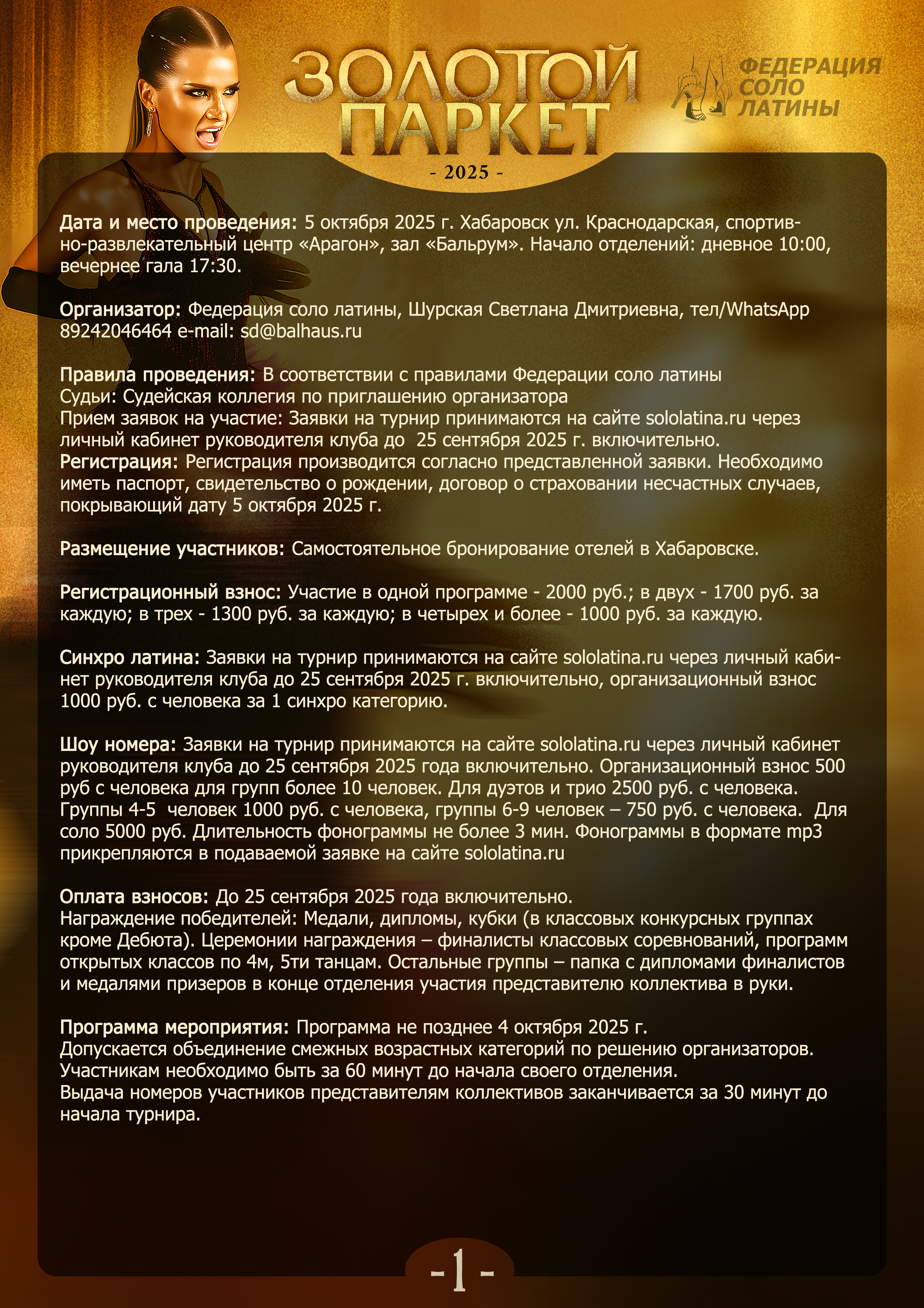 Организатор: Федерация соло латины, Шурская Светлана Дмитриевна, тел/WhatsApp 89242046464 e-mail: